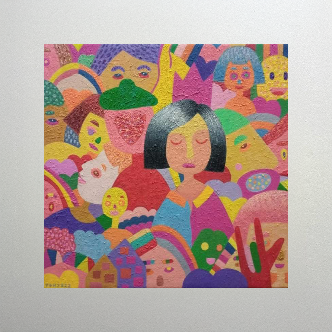 푸른 하늘 아래, 한 인물이 장난감 자동차를 타고 구름과 점들로 가득한 초현실적인 풍경 속에서 여행을 즐기고 있습니다. 인물의 머리 위로는 구름 모양의 우산이 떠 있는데, 이는 꿈이나 상상의 방패를 상징합니다. 작은 자동차, 구름, 우산을 탄 기이한 생물들이 인물과 함께하며, 현실의 제약에서 벗어나 내면의 환상 세계로 향하는 유쾌한 여정을 보여줍니다.