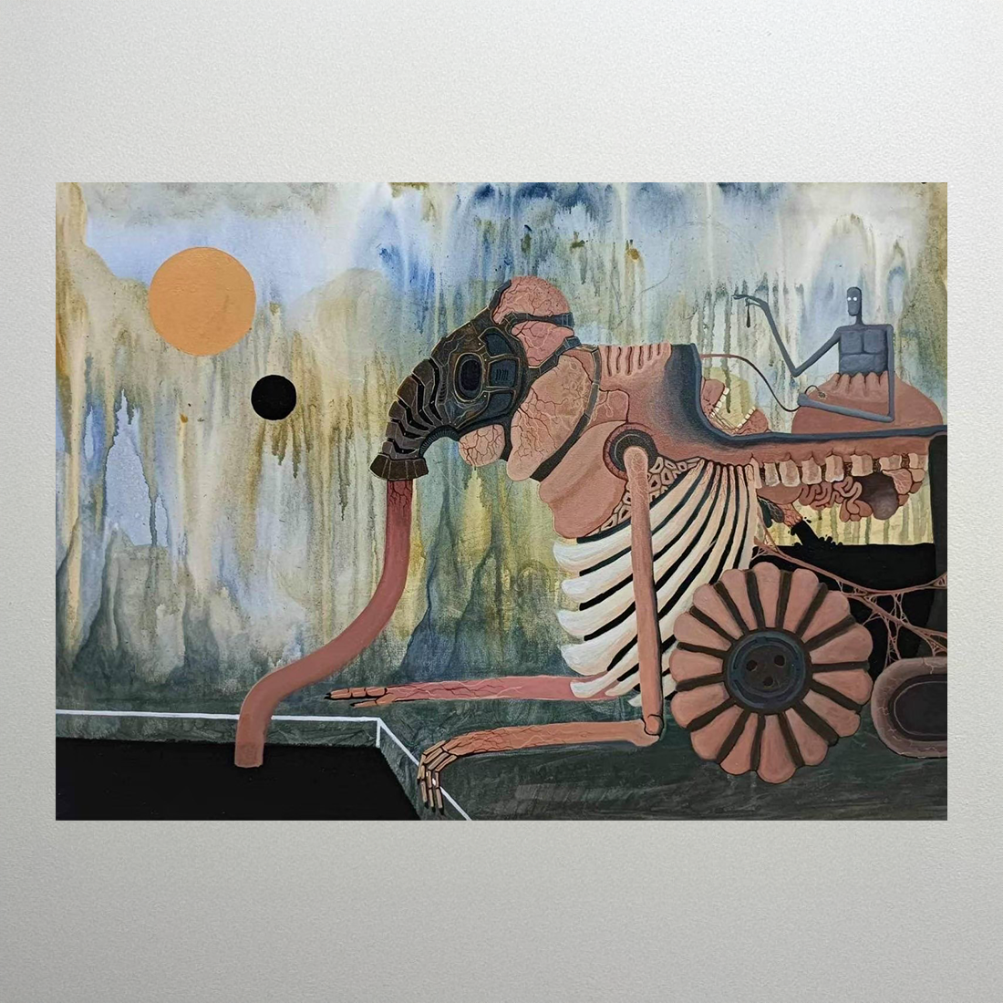 “(‘노예’ 또는 ‘종’을 의미하는) 이 제목은 현대의 노동이나 시스템적인 과정에 갇힌 인간의 소외된 상태를 탐구합니다. 인물들은 기계화된 환경 속에서 반복적인 행동을 수행하거나 거대한 기계 장치에 연결된 모습으로 묘사됩니다. 이는 인간성을 상실하고 시스템의 단순한 톱니바퀴가 되어버린 현대인의 실존적 고독을 보여줍니다.”