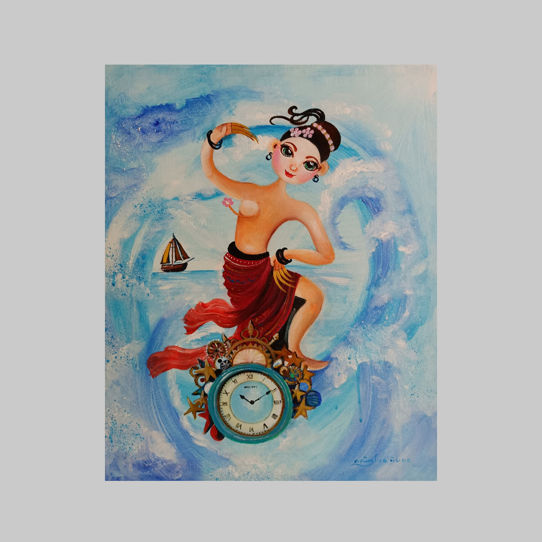이 장면은 거대한 파도, 항해하는 배, 그리고 한 여인의 춤을 묘사합니다. 여인이 딛고 선 시계는 단순한 장식이 아니라 운명을 측정하는 장치입니다. 파도는 세상의 혼란을 상징하고, 배는 인간의 여정을 대변합니다. 이 작품은 시간 속에서 진실이 마치 조수처럼 항상 나타났다가 사라진다는 것을 시사합니다.