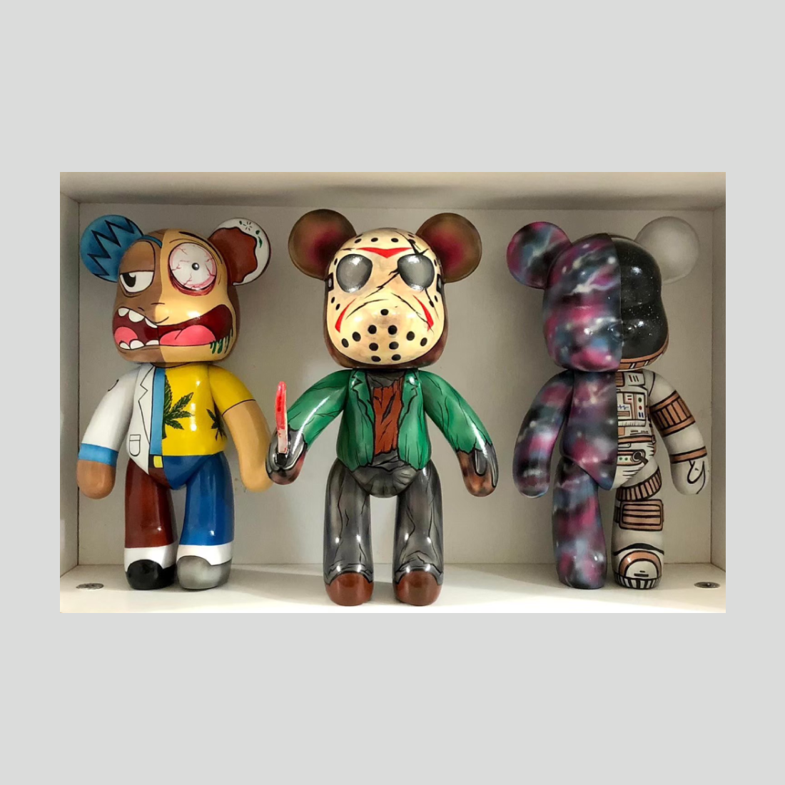 피라실프 락산티웡은 익숙한 곰 인형 형태를 대중문화의 상징으로 재해석한다. 만화적 유머, 영화적 공포, 우주적 상상력이 아크릴 색채 속에서 뒤섞이며 위트와 풍자를 전한다. 익살스럽지만 묘한 불안을 품은 이 작품은 현대 소비문화 속 정체성과 개성을 탐구하고, 장난감·영화·예술의 경계를 재치 있게 허문다.